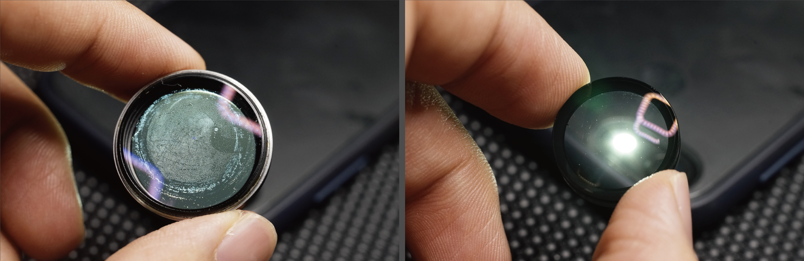 대물 렌즈 바로 뒤에 고착된 헤이즈, 오래된 케이스입니다.