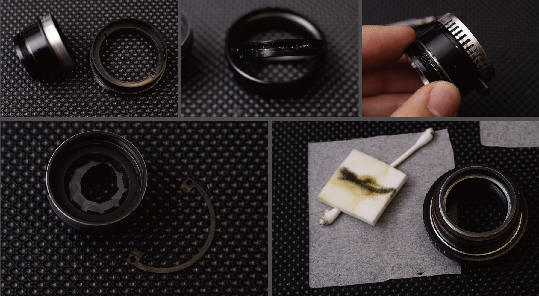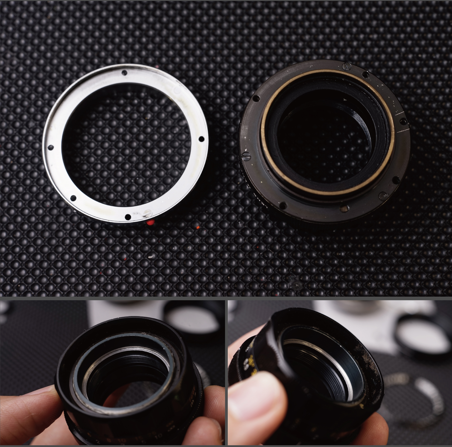 정비를 위해 분해된 초점경통.