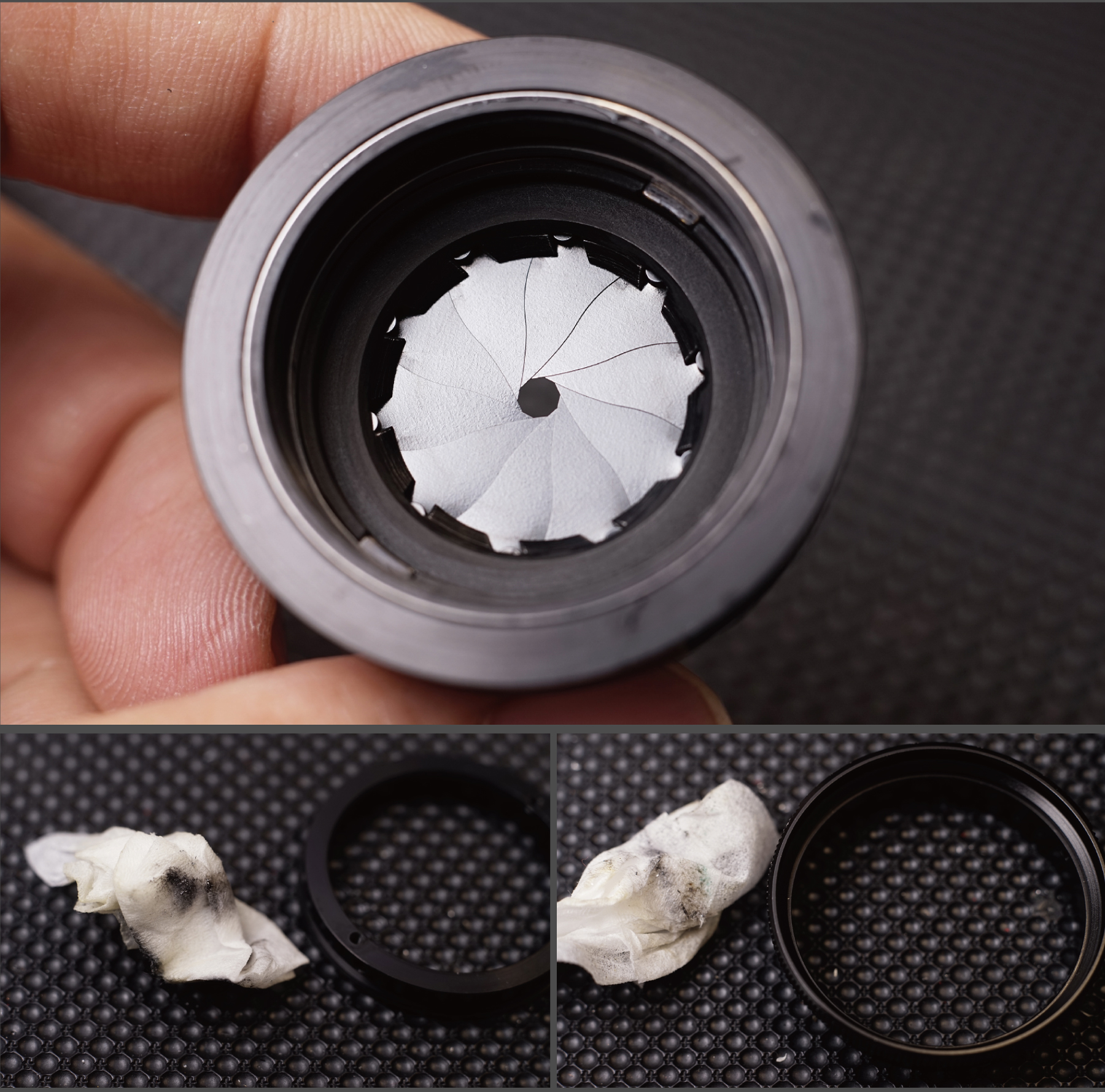 조리개날의 오염.