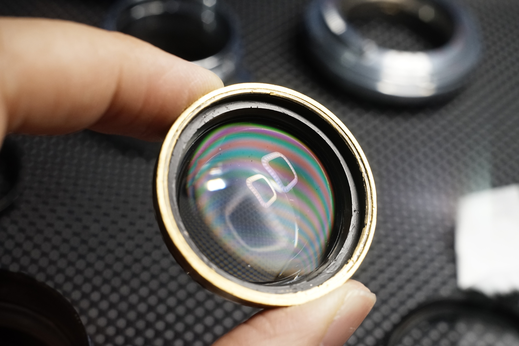 종종 렌즈를 보면 이렇게 무지개 컬러의 띠가 보이는