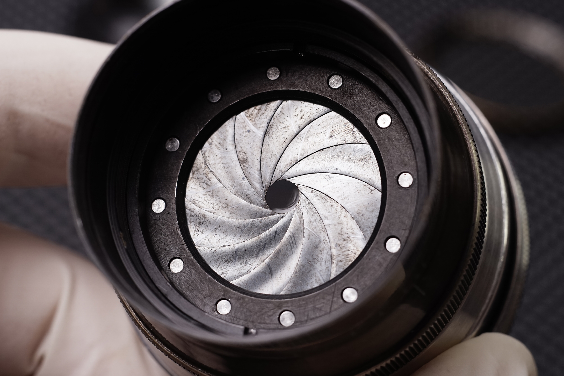 조리개 날의 오염도 심한 편으로 오일들과 작동으로 인한 마찰로