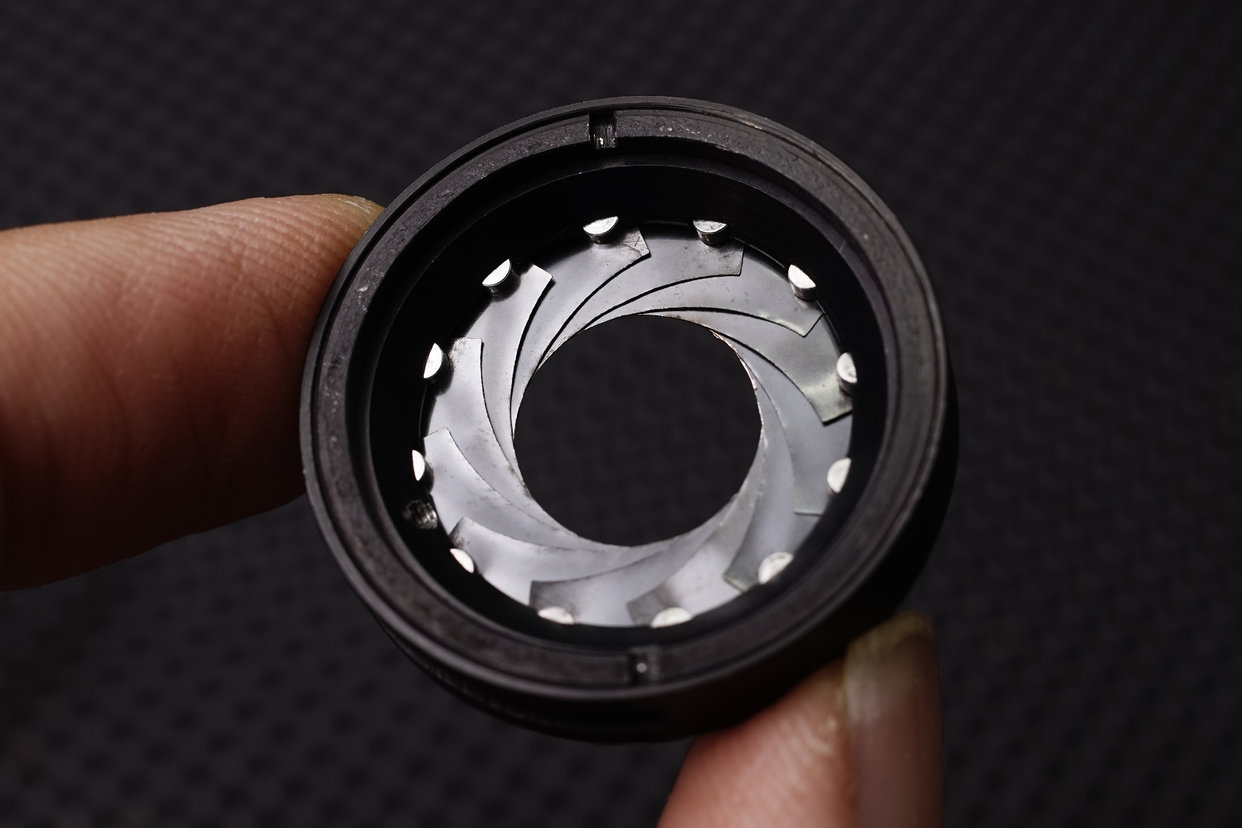 조리개날은 얇은 금속판을 프레스로 찍어 내는 방식으로 제작되는데