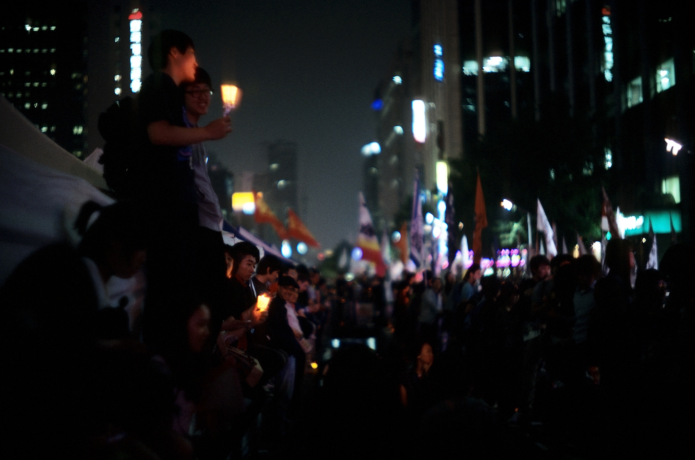 노량진수산시장에서 네이든과 함께 촬영한 5cm f/1.1의 첫 롤 Fuji Provia 100F를 현상하고 루페를 들여다보면서 처음 경험해보는 F/1.1 묘사력에 놀라지 않을 수 없었다. 이 렌즈는 광량이 부족한 실내에서 상기한 장점과 단점이 묘하게 섞이며 장면과 장면을 맛깔스럽게 버무려내고 있었다. 어떤 장면에서는 극도로 낮은 심도가 만들어낸 절묘한 입체감으로 도마 위에 놓인 생선이 펄떡거릴 것 같은가 하면, 또 다른 컷은 축축하게 젖어 비린내 진동하는 공간을 베일로 포장해 아름다운 회화처럼 공간을 재해석해냈다. 이러한 묘사 특성을 끌어내기 위해서 담고자 하는 피사체와 배경 사이의 거리를 적절히 좁히거나, 낮은 심도를 활용해 초점의 앞부분을 흐리는 등, 기존의 빛망울을 부각시키는 촬영방법에서 벗어나는 것도 재미있었다. 목적에 따라 다르겠지만 점광원이 많은 배경을 피해 촬영하는 것이 안정적인 이미지를 만들어내는데 도움이 된다. F/1.4정도로 조여도 여전히 컨트라스트가 옅지만 해상력은 충분한 수준으로 올라온다.