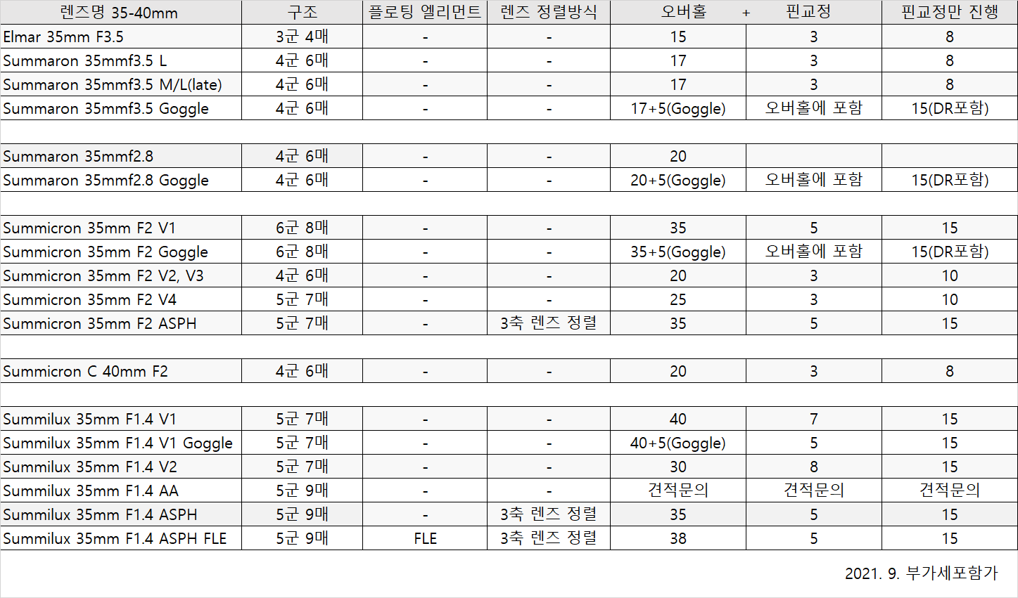 *Summilux 50mm F1.4 ASPH, Summicron 50mm F2 APO 작업금액 업데이트