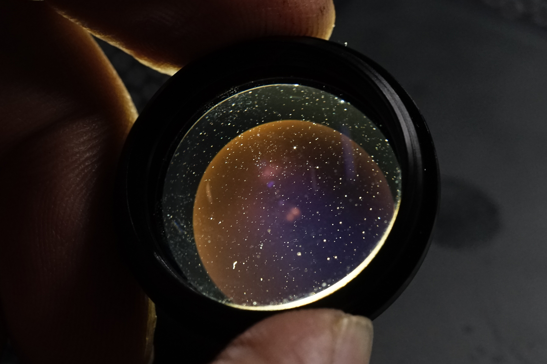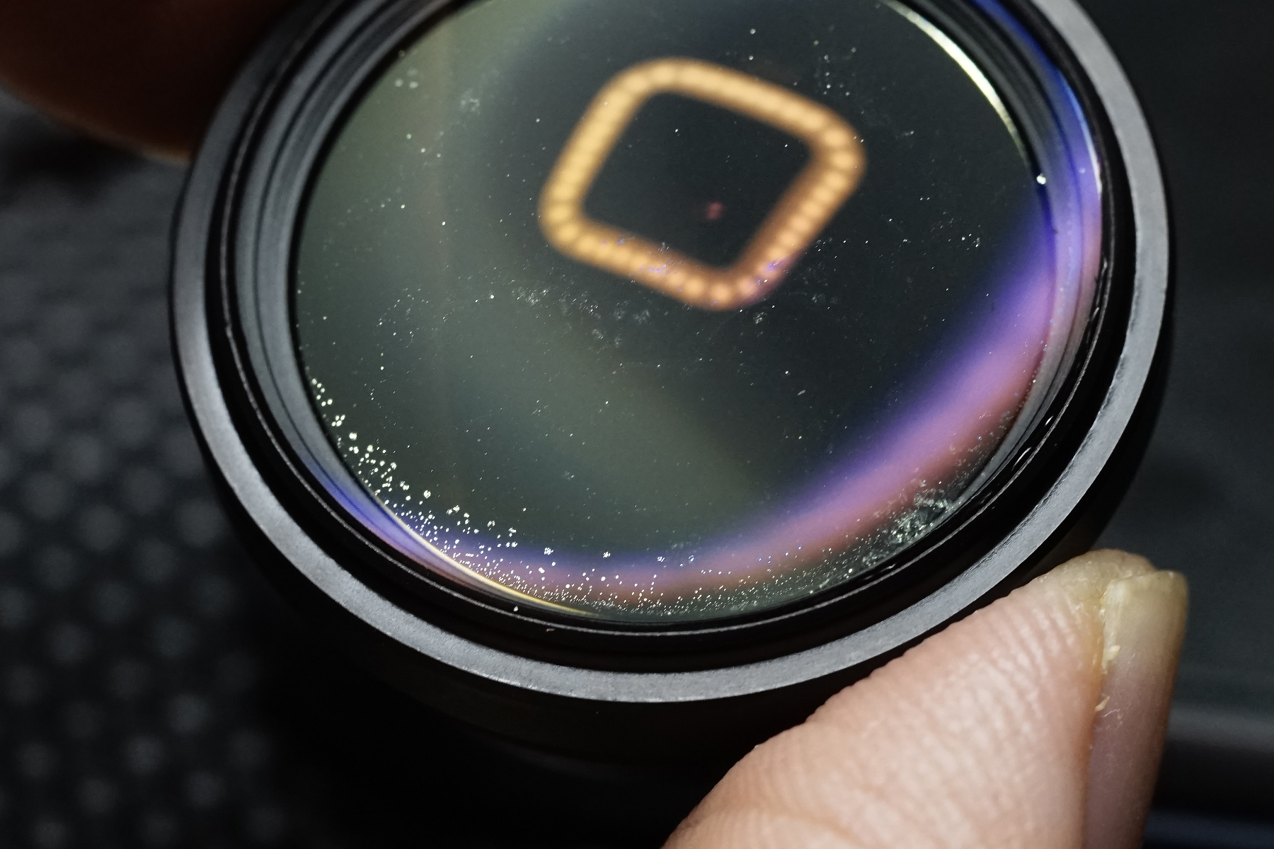 헤이즈, 미세입자, 유막이 함께 엉겨있는 렌즈면 오염이 확인됩니다.