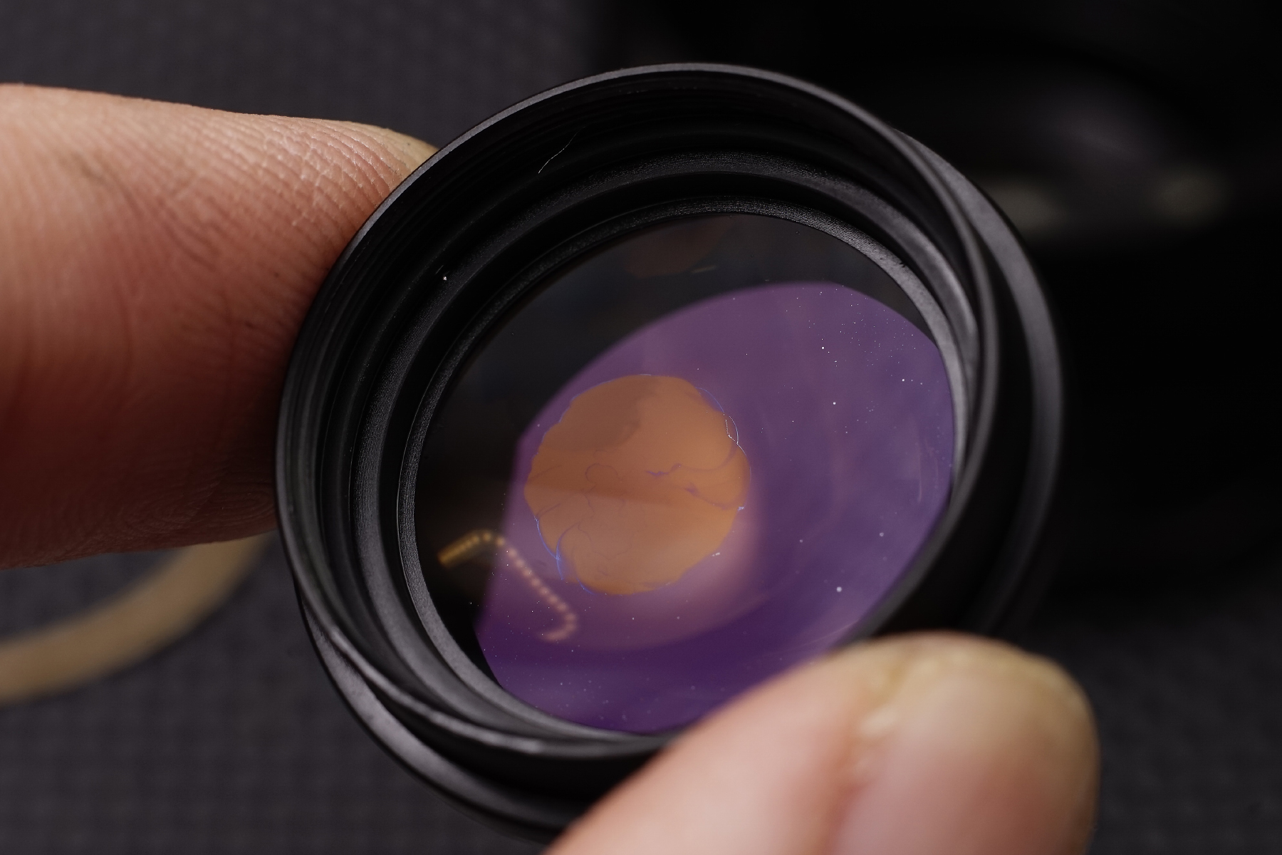 올드렌즈의 보라색 코팅에 유막이 더해지면 청보랏빛이 돌게 됩니다.