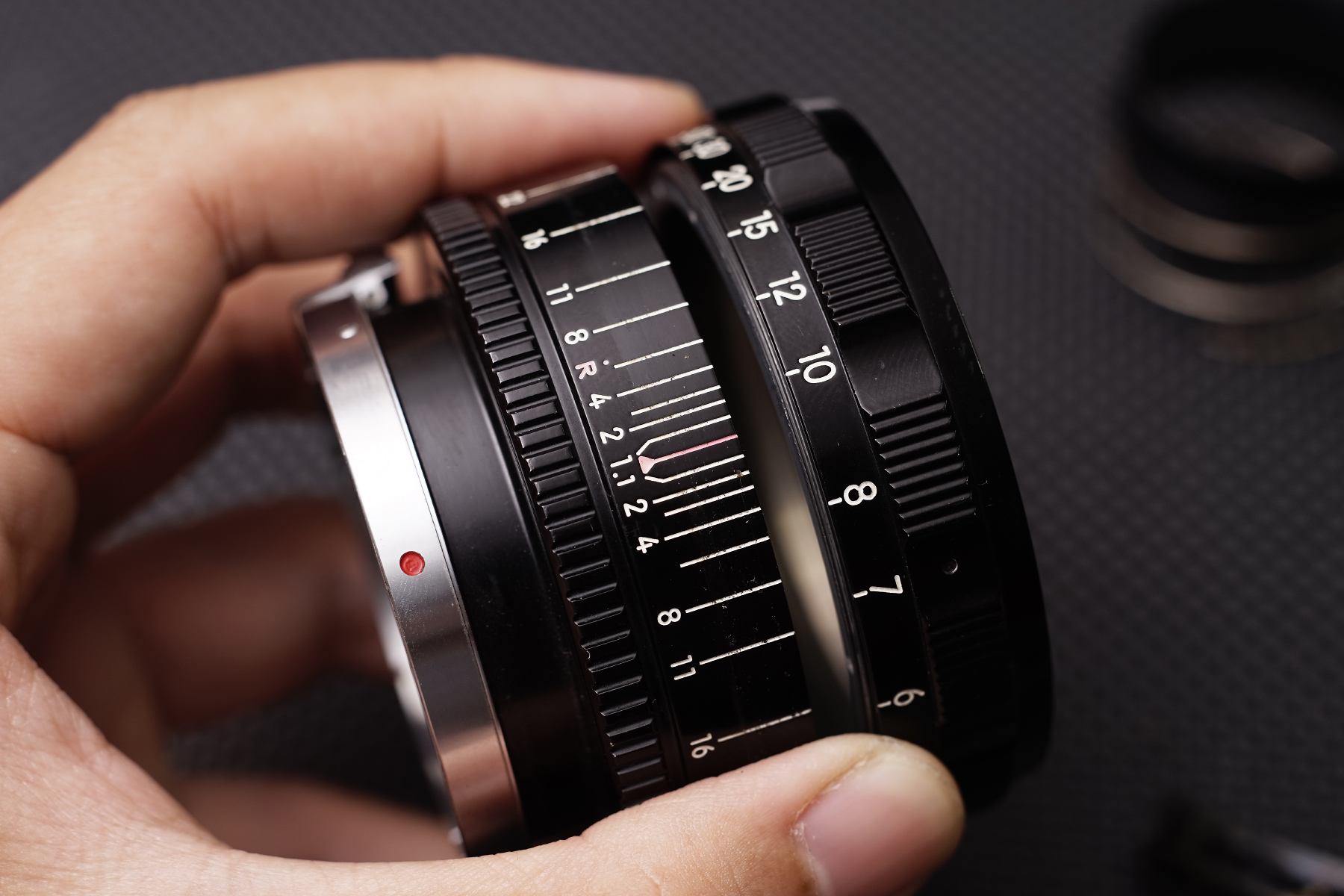 단 주의하실 점이 있는데, 라이카 M 바디에서 사용시 아메데오/코이로 어뎁터 경유시 장착이 가능한 렌즈는 렌즈 자체에 헬리코이드가 내장된 외조식(External mount/광각마운트) 버젼이며 개조 없이는 심한 전핀 현상이 발생합니다. 자세한 내용은 아래에서 참고하시면 되겠습니다. 이중상 연동이 필요없는 일반 미러리스 카메라에서는 물론 문제가 없습니다.