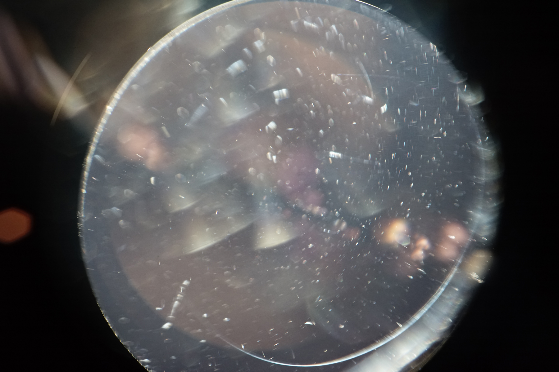 조리개 날 조립전 경통 내측에 있는 오염과 남아있는