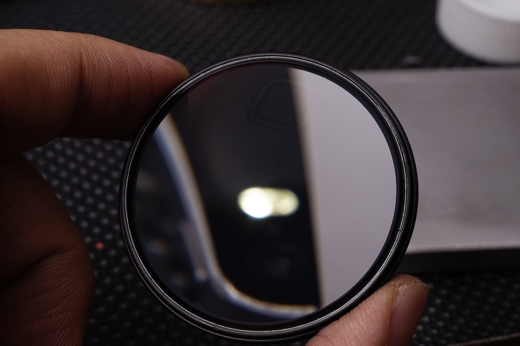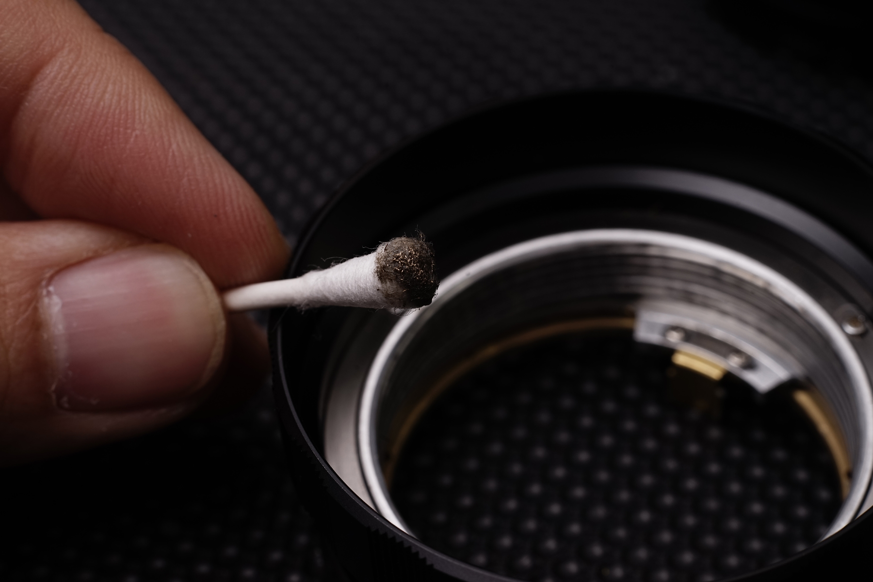조리개에 번진 윤활유 흔적.