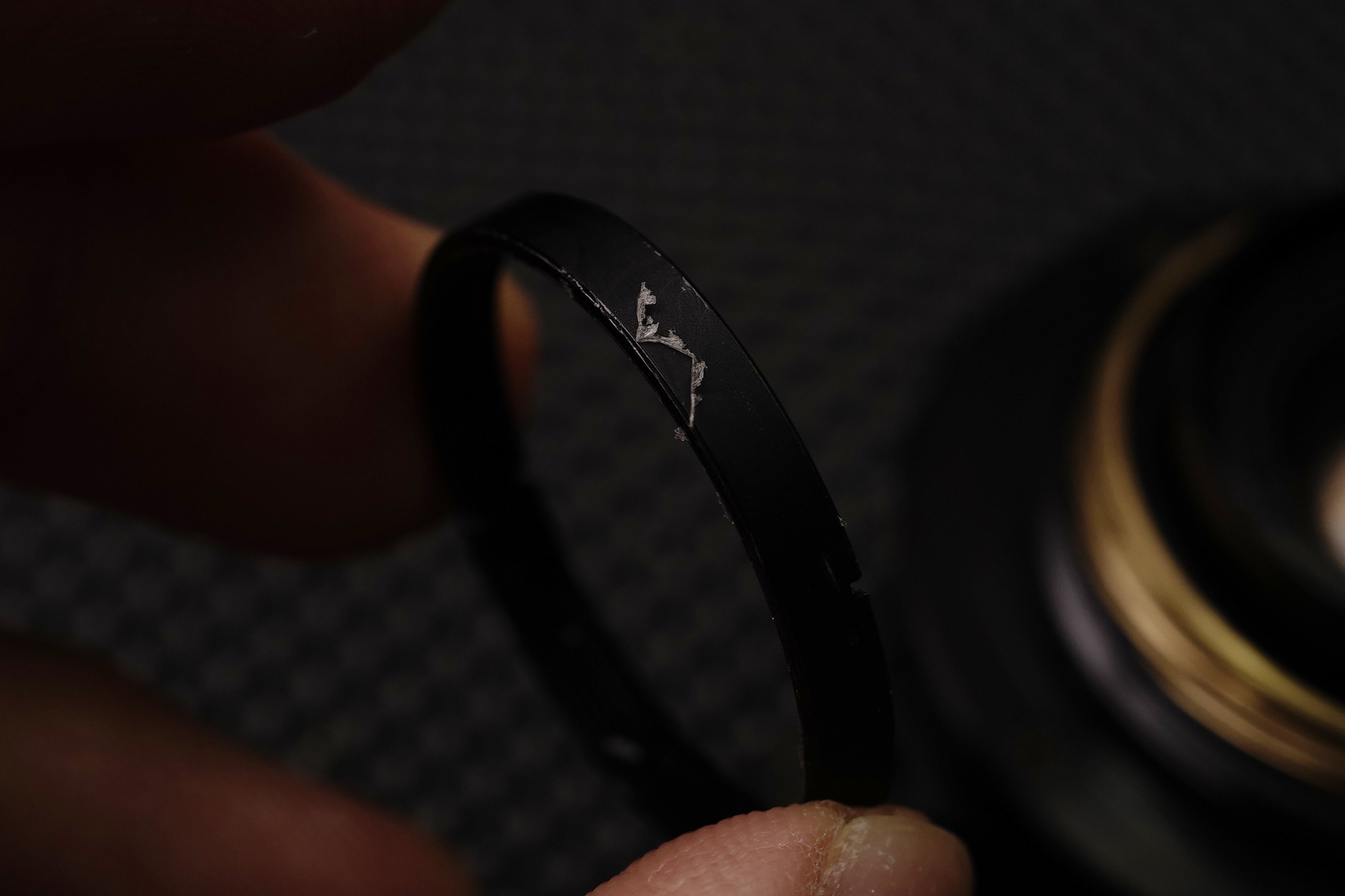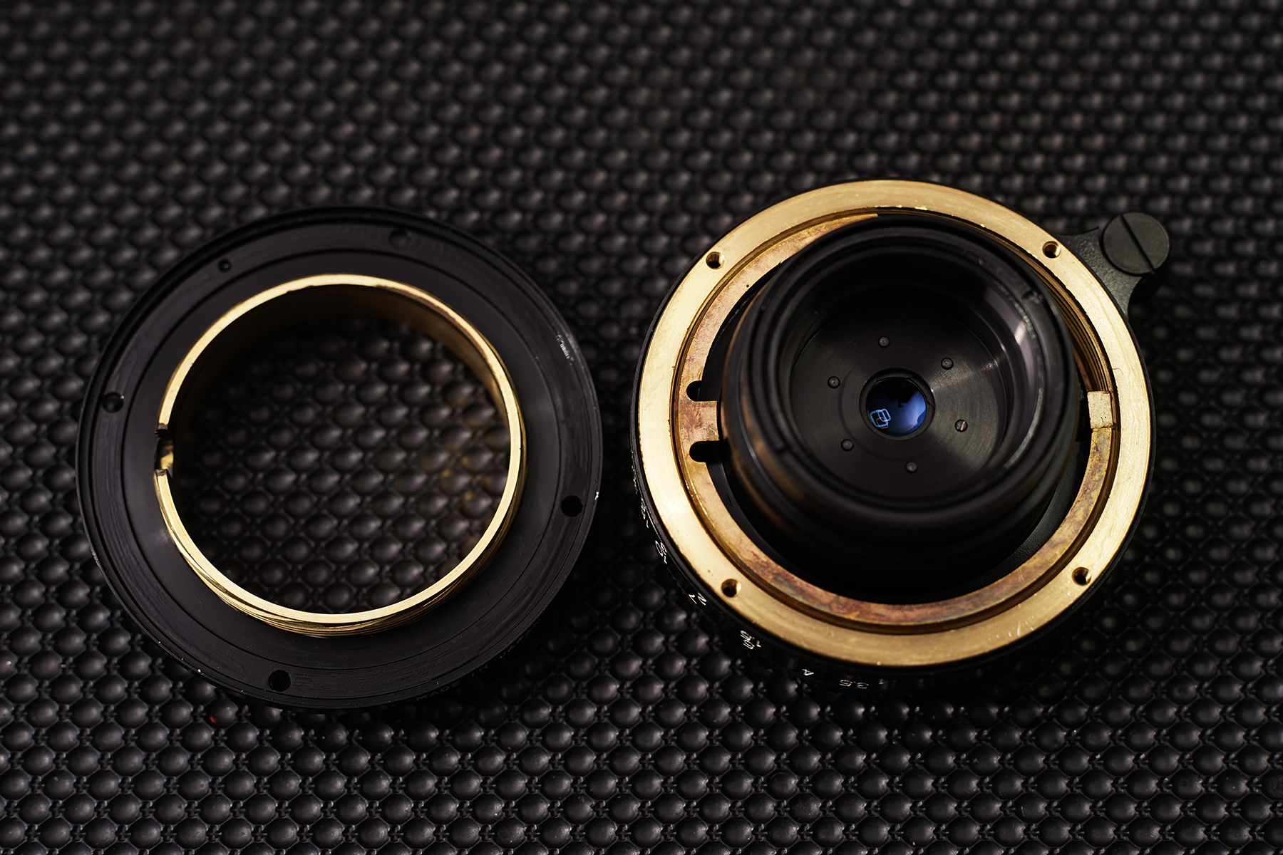 아베논 렌즈의 경우 높은 확률로 분해에 어려움이 있는 경우가 있는데, 최대개방 조리개 표시점이 렌즈 재질상 쉽게 돌아가기 때문에 추가적인 접착이라던지, 나사를 박는다던지 하는 모디파이가 이루어진 개체들이 자주 보입니다. 이 개체 역시 아예 분리가 되지 않도록 접착처리를 하여 한참 시간이 걸렸습니다.