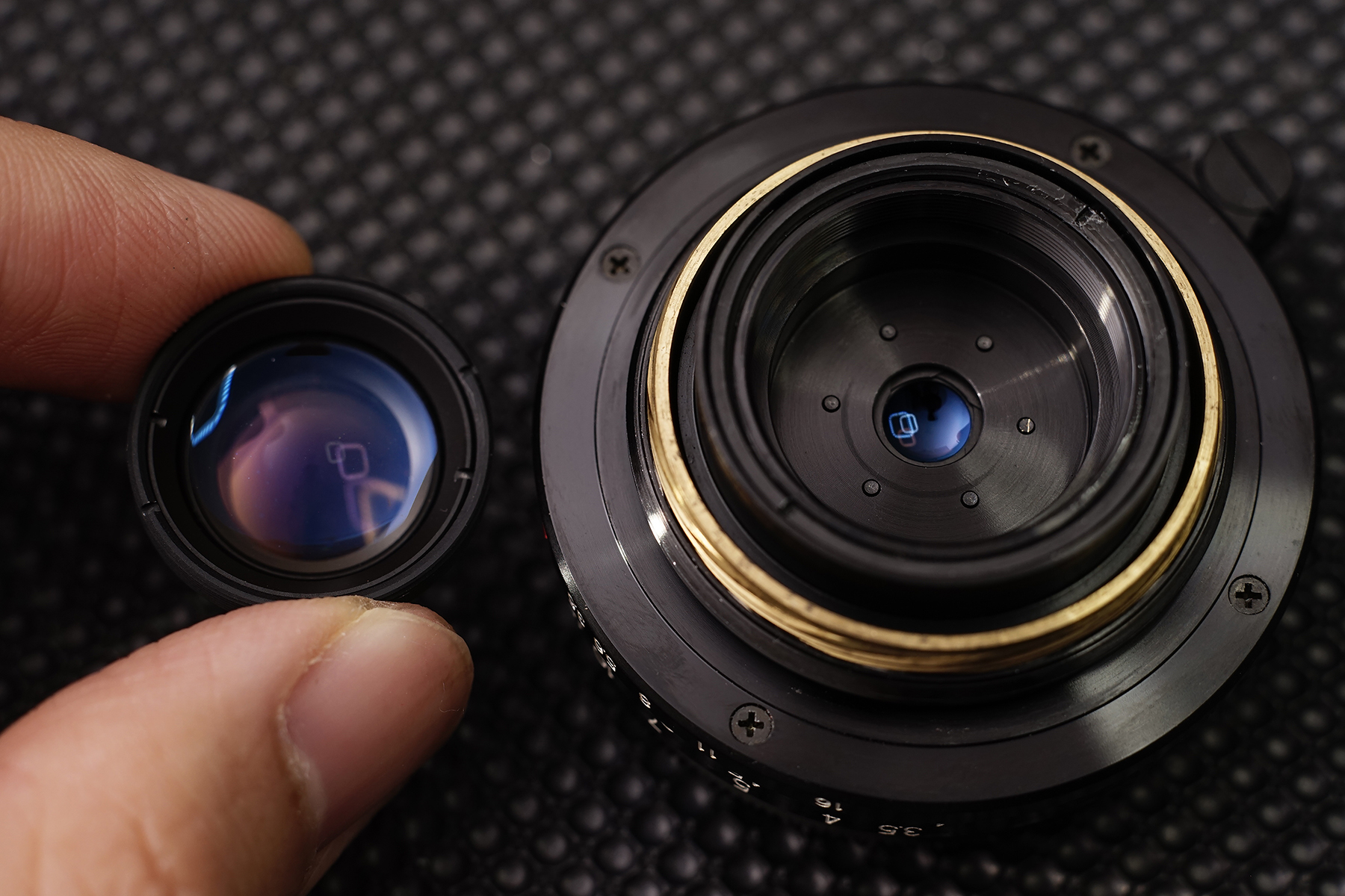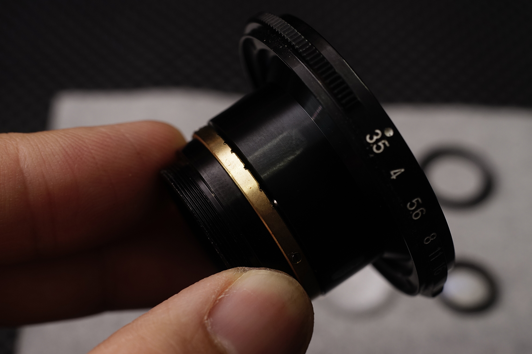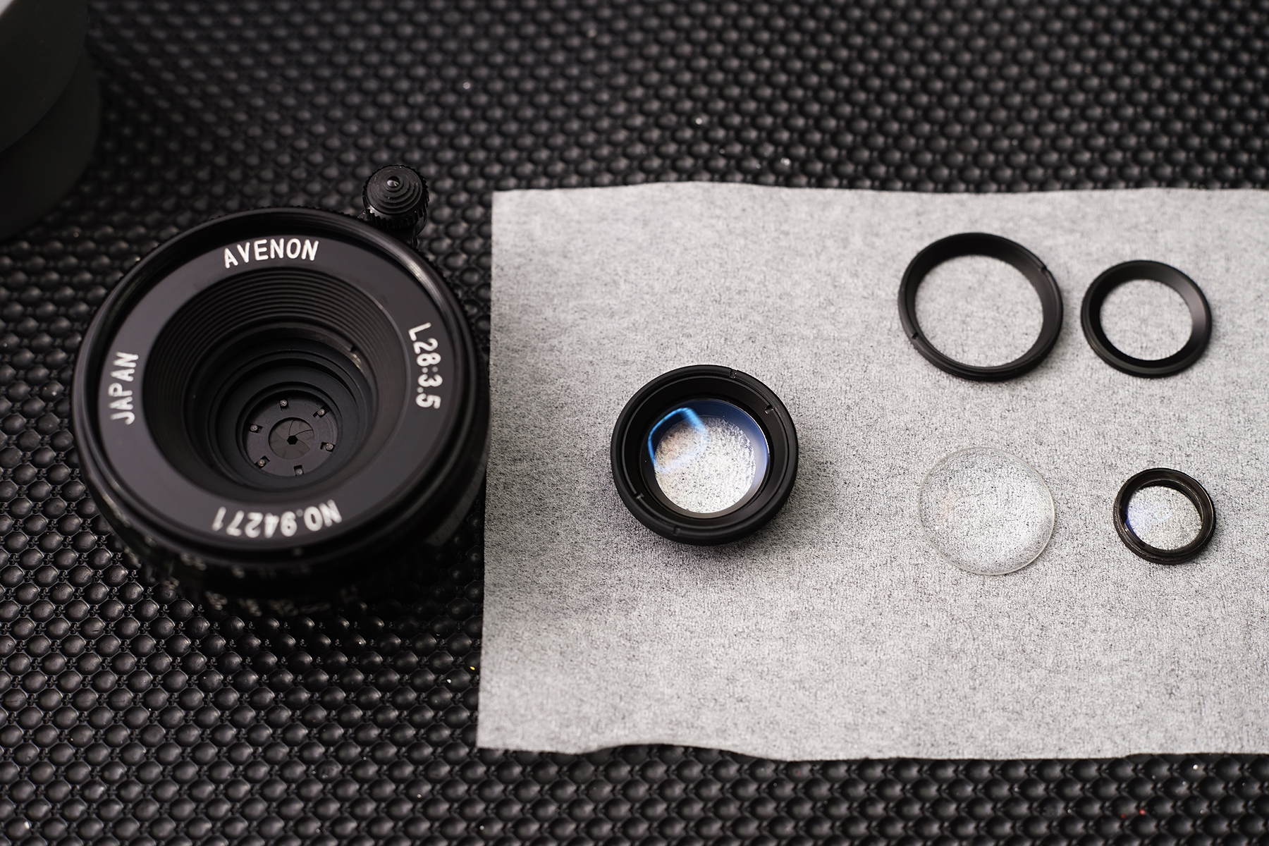 CLA가 완료된 Avenon 28mm F3.5 렌즈의 모습. 무한대가 넘어가버리는 후핀 문제를 마지막으로 수정해주면 드디어 작업 종료.