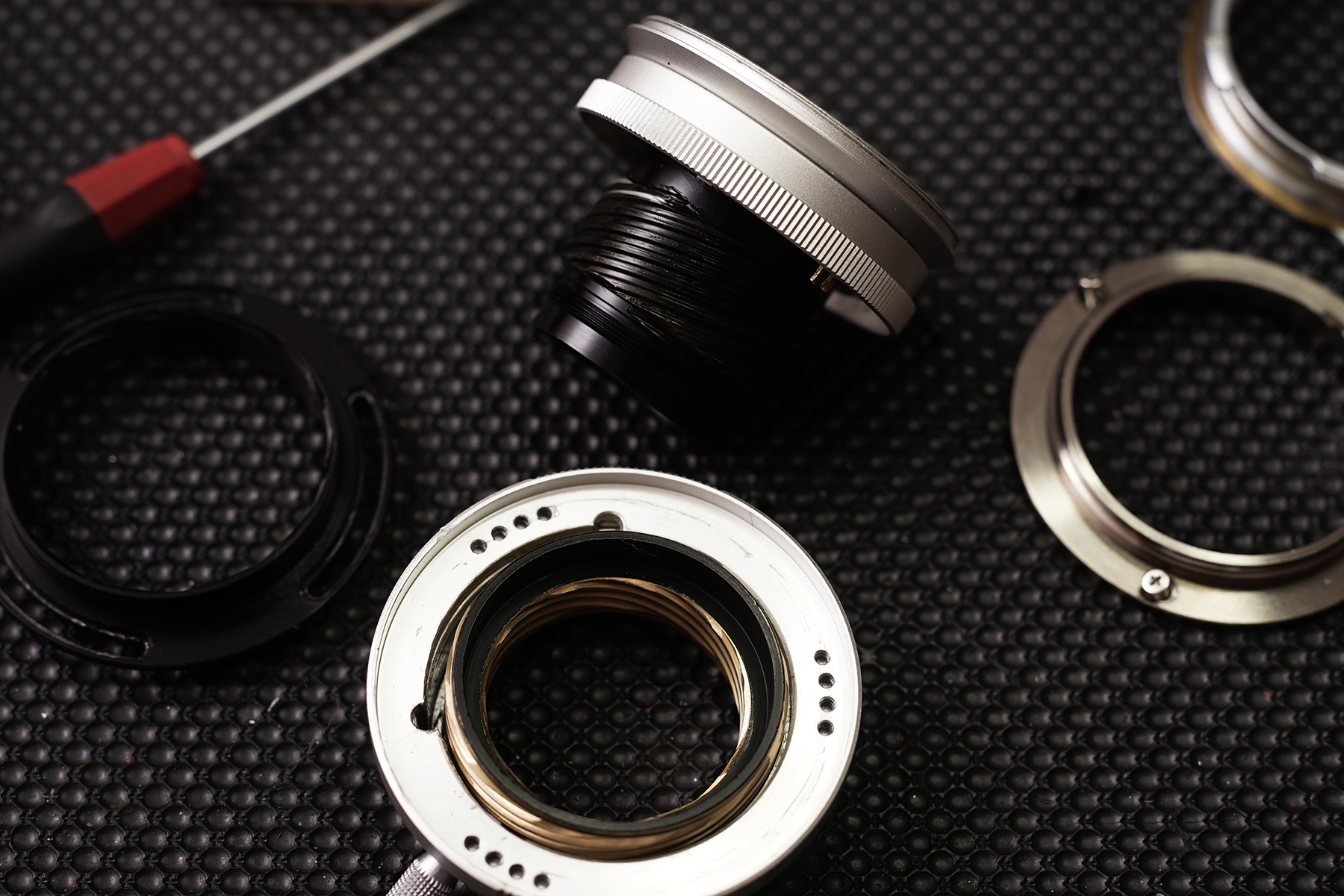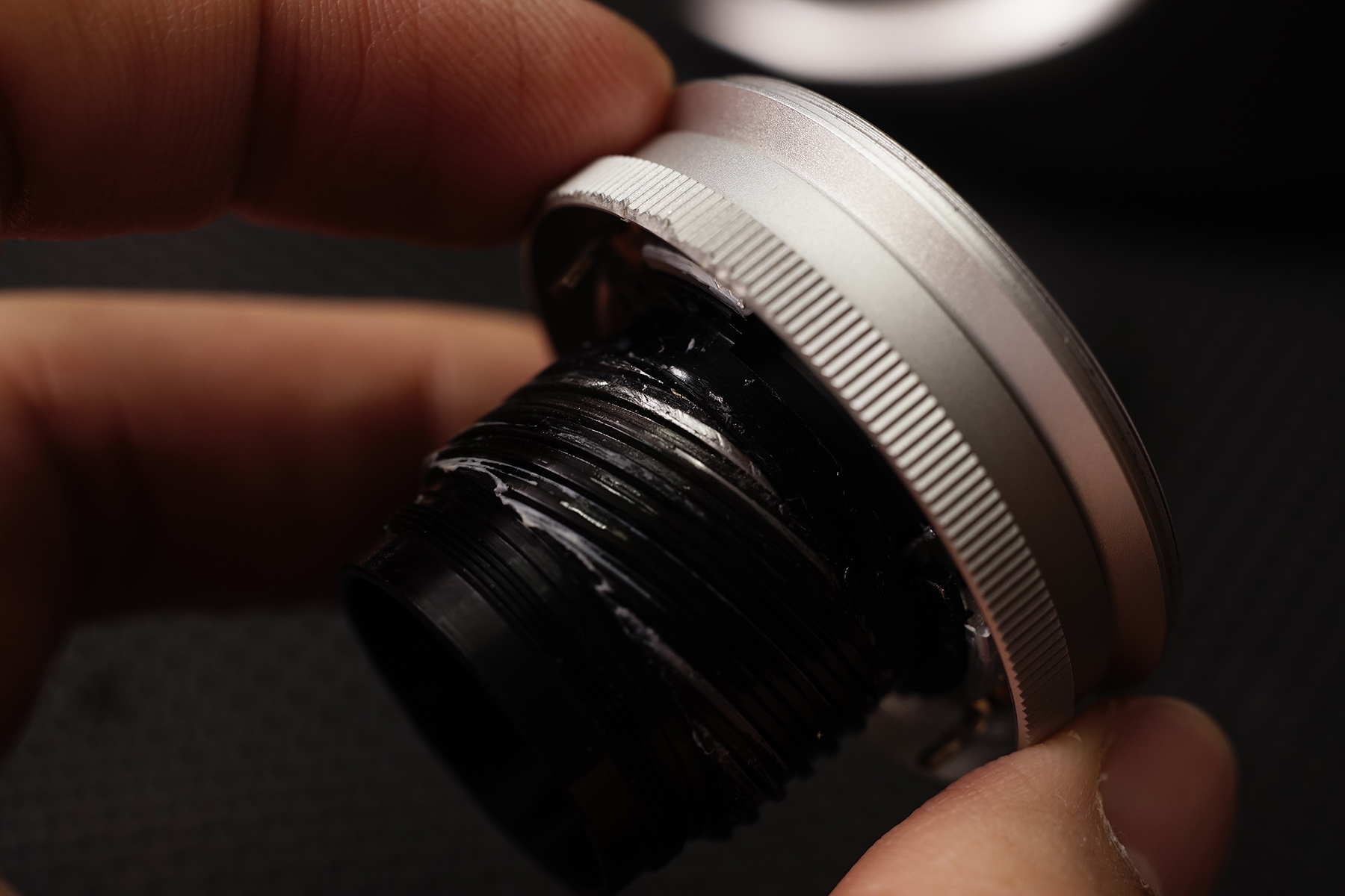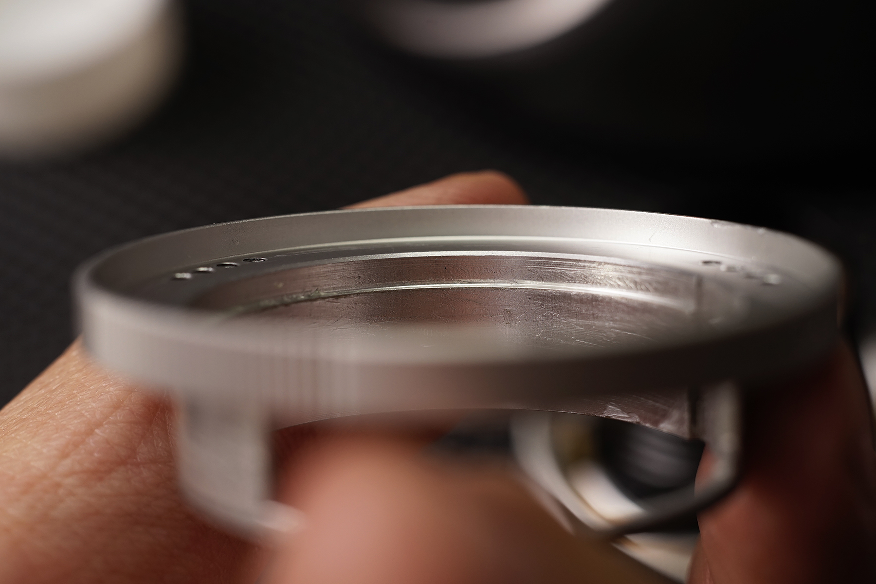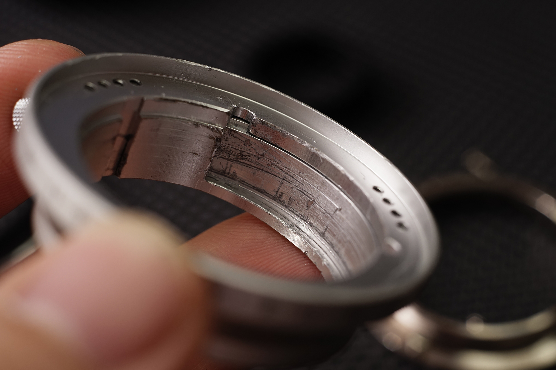 역시, 절대로, 한번에 해결되는 경우가 없습니다. 포커싱은 가능하지만 매우 빡빡한 상태로 긁히는 느낌이 남습니다. 이제 문제가 일어나는 부분을 일일히 육안 및 촉감으로 검사해 수정해나갑니다. 긁힌 마운트 부분의 표면이 불규칙해지면서 헬리코이드의 축이 미세하게 틀어진 것을 확인, 이부분도 평탄화를 진행합니다.