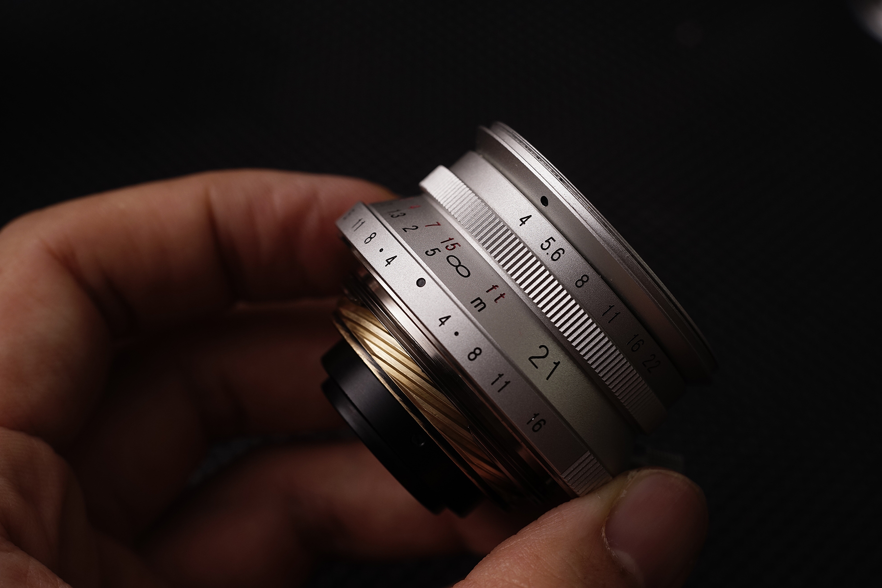 보익틀란더의 스크류 마운트 21mm F4렌즈는 요즘 유행하는 라이카 M 레인지파인더 커플링의 범위를 벗어나는 0.5m 최단거리까지 지원하는 상당히 가성비가 좋았던 렌즈입니다. 특히 미려한 디자인과 얇은 두께, 가벼운 중량감은 이후 출시된 후속 21m들에 비교해도 가장 아름답고 개성있는 디자인이라 할 수 있어 여전히 인기가 높은 버젼입니다.
