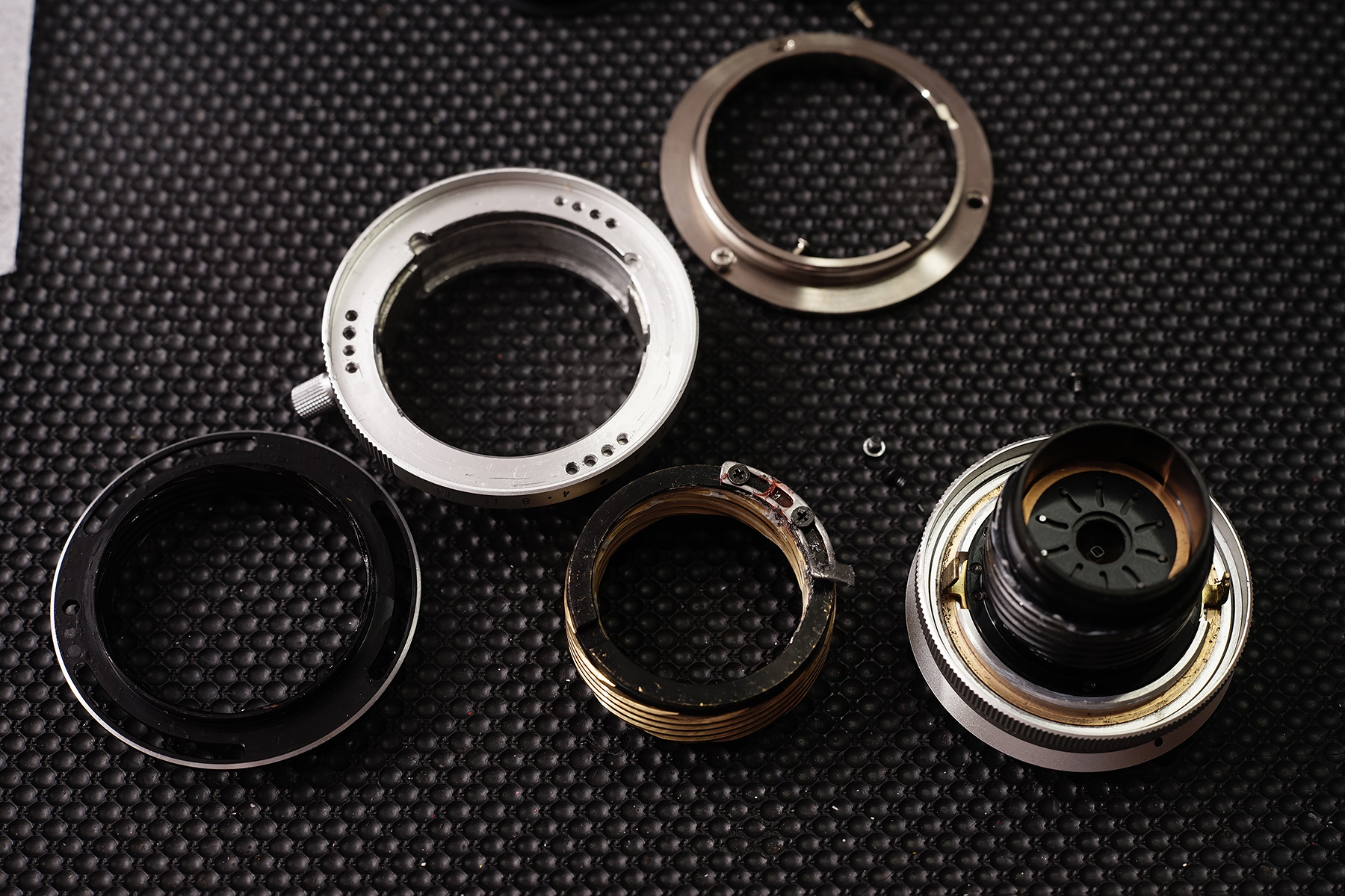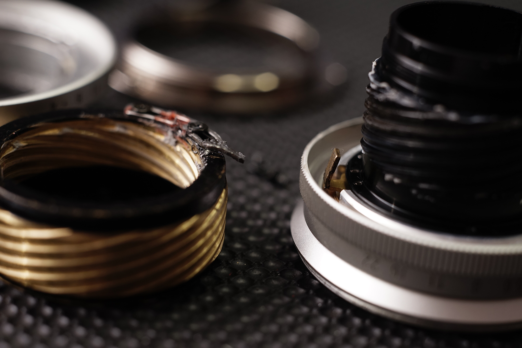 초점 헬리코이드의 회전운동을 광학 헬리코이드의 직진 운동으로 바꿔주는 로드 부분이 완전히 이탈 및 휘어진 상태였고 이 과정에서 본체의 스크류 및 사이드월 등에 상처 발생시켜 매뉴얼대로 조립한다 해도 본래의 부드러운 포커싱은 불가능한 상황이었습니다.