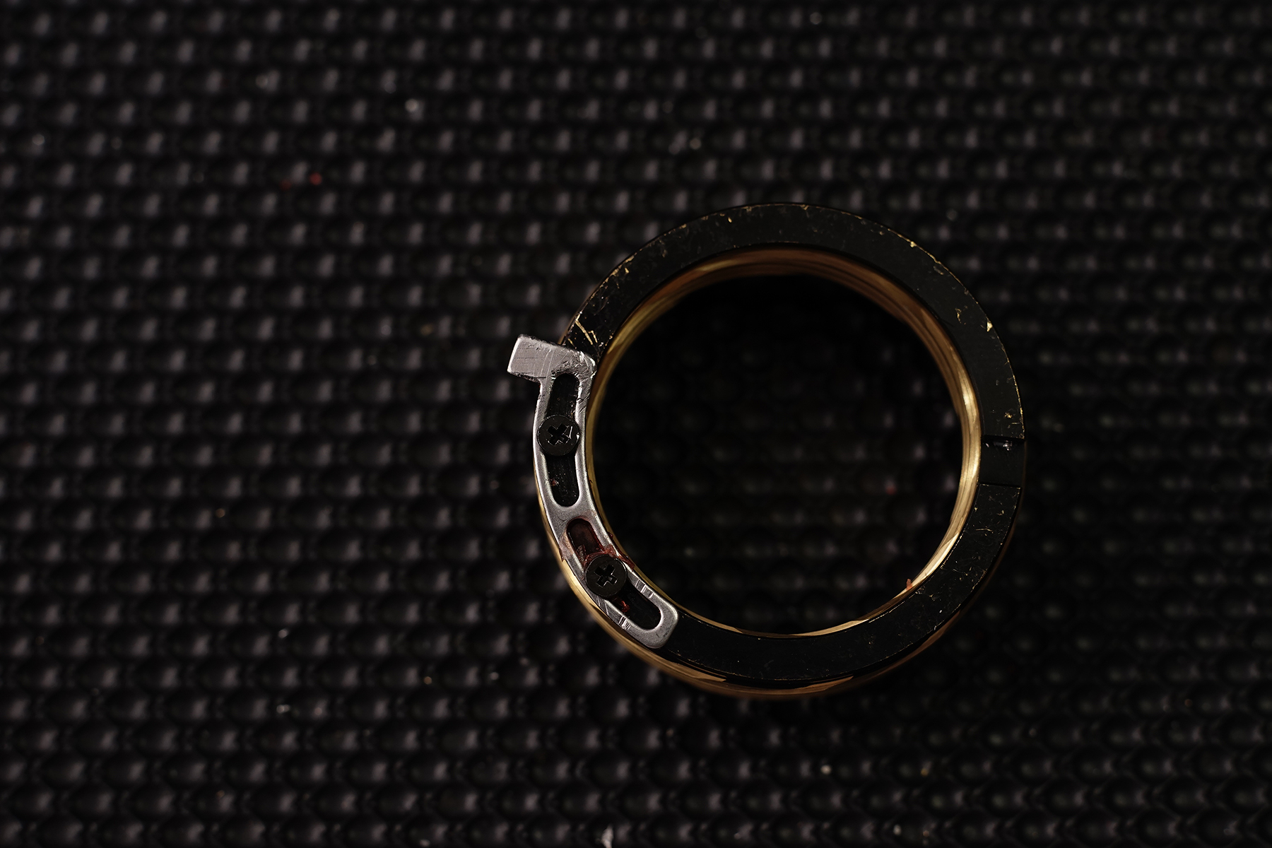 렌즈 조립시 필요한 부분은 이렇게 측면이 뚫려있습니다. 원가를 줄이기 위해 최대한 부품수를 줄여가며 조립할 수 있도록 고심한 흔적이 보이는 부분입니다. 다만 이런 경우 유사시, 혹은 거칠게 오버홀을 하는 경우 이처럼 문제가 생기기 쉬운 단점이 있습니다. 이번 경우도 하단의 림 부분이 휘어버린 탓에 포커싱시 긁히는 문제가 발생하여 형태를 바로 잡아줍니다.
