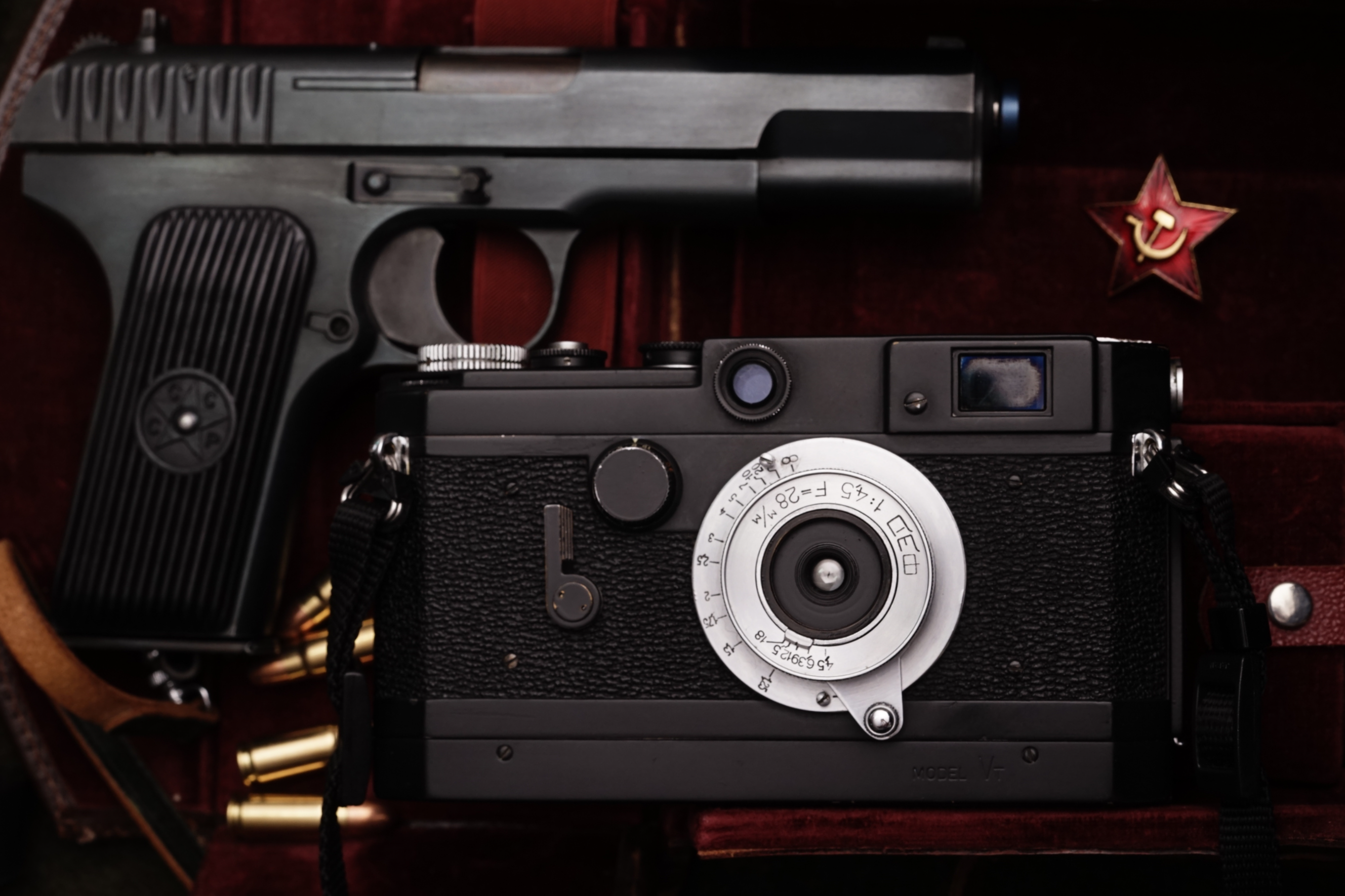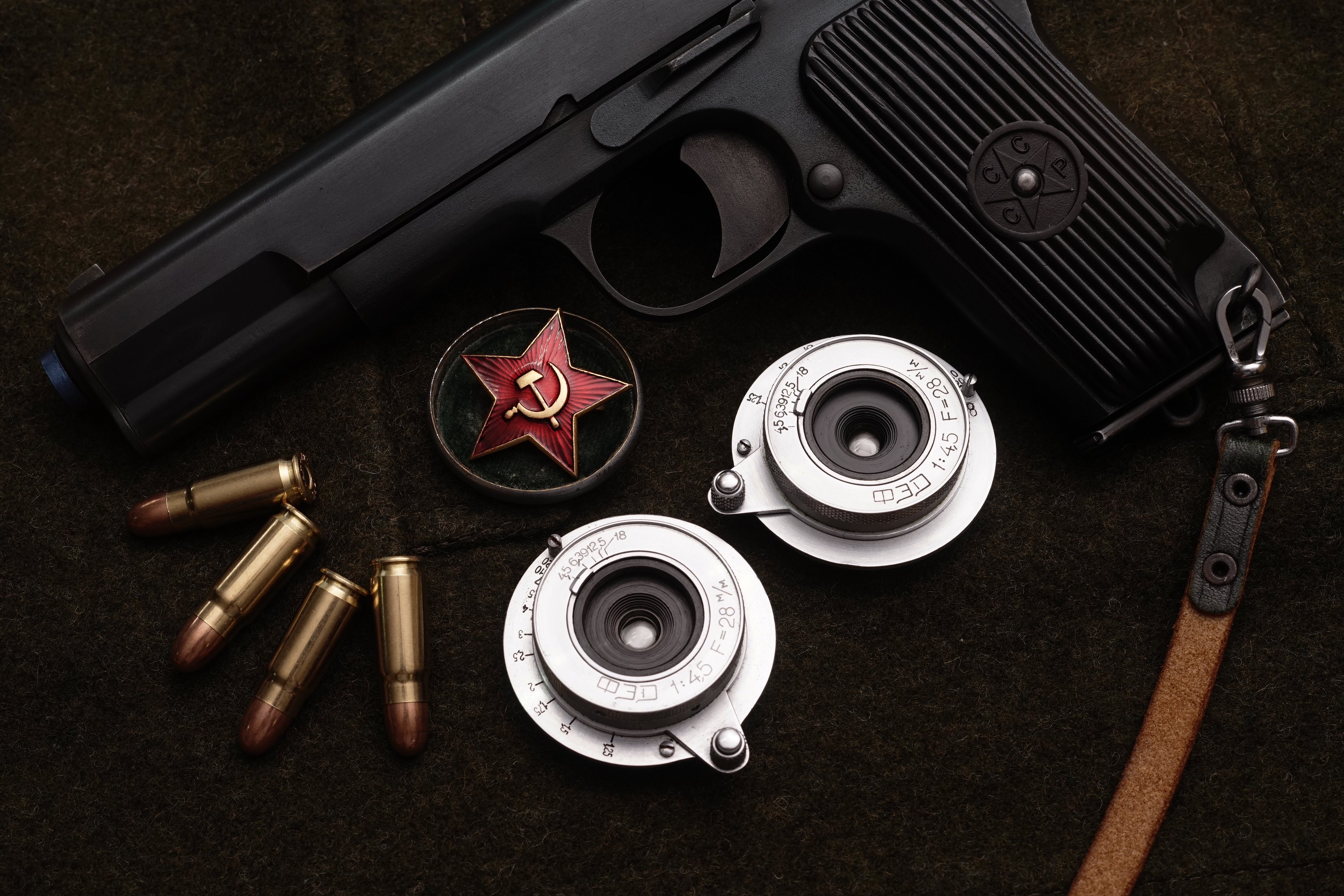 FED 카메라의 명칭에 관한 정보를 찾다가 세상에나 이게 사람 이니셜이었다는걸 처음 알게 되었는데 그런데 비밀경찰이라니 왠지 구소련제 권총 같은 걸 배경으로 쓰면 좋을 거 같았다. 떠오른 물건은 FED 28mm F4.5와 보급 시기가 비슷한 Tokarev TT-33, 구소련의 프로파간다로 유명한 사진 속 바로 그 권총이다. (촬영에 사용한 제품은 SRC 가스블로우백 제품)