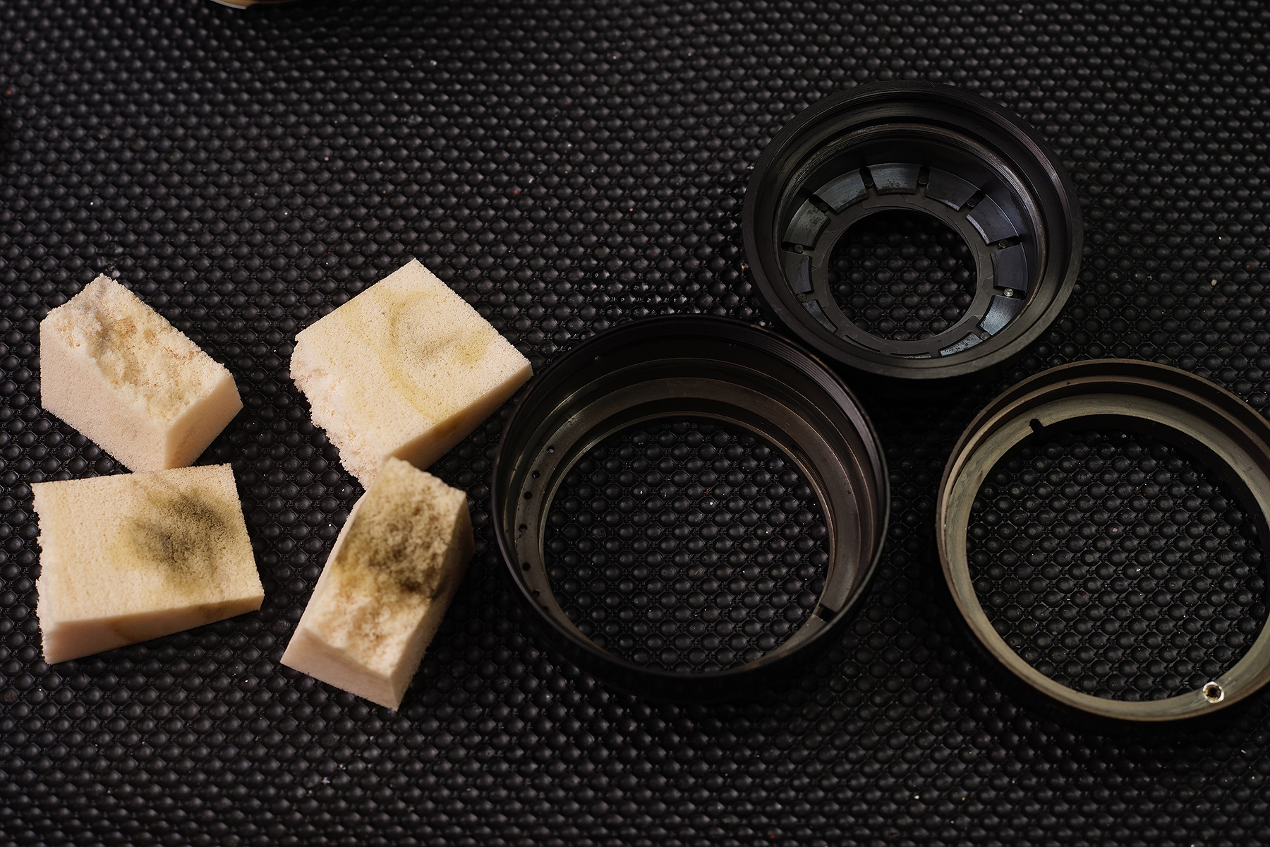 작업이 의뢰된 렌즈는 내부의 곰팡이로 보이는 흔적과 기타 내부에 떨어진 미세입자들, 헤이즈와 조작시 무거운 토크감을 개선하고자 입고되었고, 전반적인 내외부의 상태는 아주 좋은 편. 콜렉터 아이템의 경우 가급적 손을 대지 않고 오랜 기간 보관된 경우가 많아 분해시에 결속링이나 기타 내부의 상태에 고착이 있는 경우가 잦아 무리한 힘을 가할 경우 여러가지 문제가 발생할 수 있고 이에 상당한 주의가 필요하다.