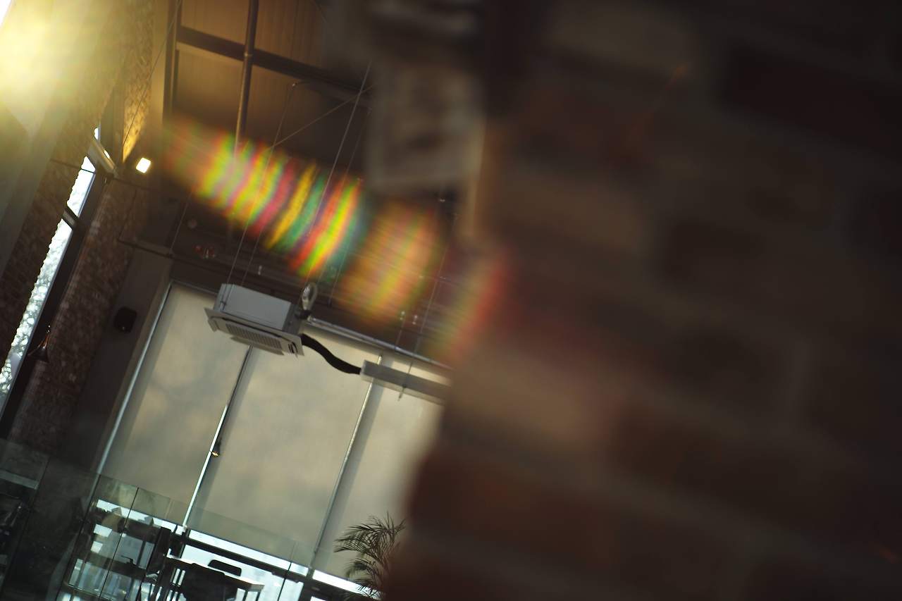 위에서 경험한 대로 역광에서의 저항력은 Peace Lens 쪽이 많이 우세합니다. V2의 경우 세월에 따른 렌즈 자체의 열화와 초기 코팅 성능의 열세에서 오는 현상으로 이를 제외하고 플레어의 형태와 크기 등 역시 동일합니다. 한가지 큰 차이점은 광원을 한쪽 귀퉁이에 위치 시켰을 때 나타나는데, V2는 하나의 콘 형상의 빛이 치고 들어오는 것에 비해, Peace Lens는 다층의 무지개색 플레어가 연속적으로 나타나는 형태로 발생합니다.